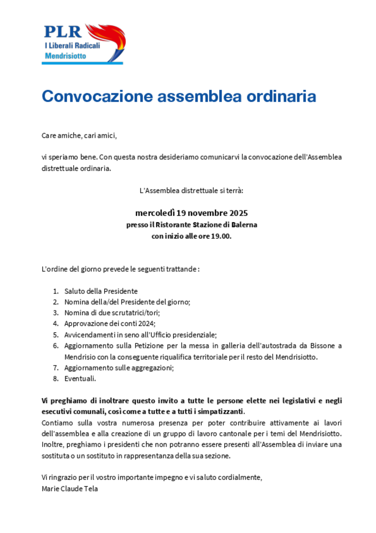 PLR Distretto Mendrisio - Assemblea ordinaria