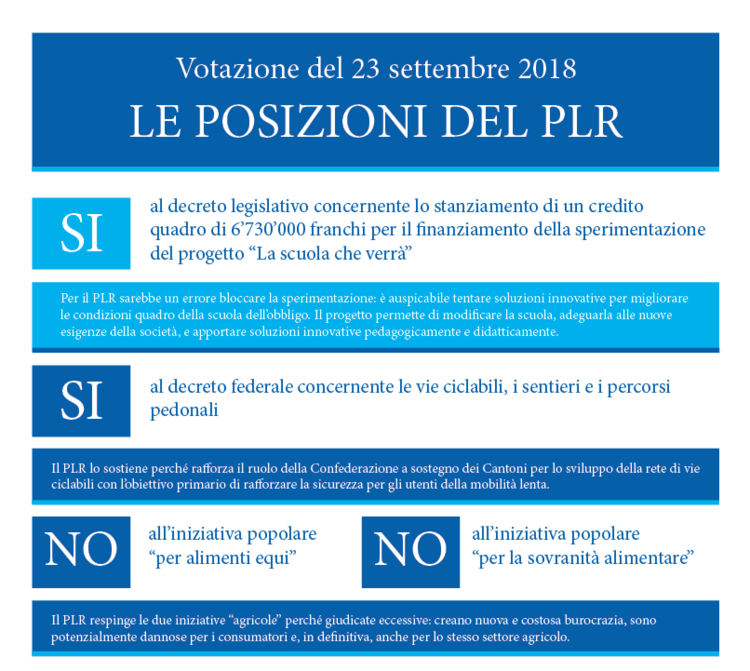 Il PLRT sostiene la sperimentazione de La scuola che verrà che tocca due proposte: il modello del Dipartimento e il modello proposto dal PLR. Da parte del PLRT non è stata tuttavia data una cambiale in bianco data al ministro Manuele Bertoli. I liberali radicali hanno storicamente sempre avuto a cuore le sorti della scuola ticinese, è un tema che ci è caro. Il PLRT ha soprattutto fiducia nei docenti e nelle direzioni di istituto: sono loro che determinano la qualità della scuola, non modelli d’importazione studiati a tavolino da un vertice dipartimentale che ha probabilmente ecceduto nell’impostazione ideologica del progetto. Nella ponderazione dei pro e dei contra, il PLRT ritiene tuttavia meglio permettere la sperimentazione anche in relazione allo spirito innovativo che ci caratterizza.